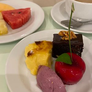 ランチビュッフェはタイ料理が勢揃いで、少しづつよそって沢山の種類を食べましたが、どれも美味しかったです。デザートのケーキが素敵でした。