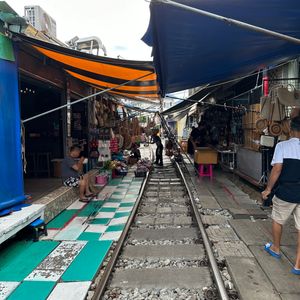 参加費用も安くないので象乗りする方とは別便にしてもらいたいです。その分の時間をメーンクローン線市場で使いたかったです。メーンクローン市場は乗車してきた電車を降り、同じ車両が折り返し出発するまでの時間が散策タイムとなります。足元がもちろん線路なので歩くのには少々時間を要します。水上マーケットよりかなり安いので、帰着時間が許せばもっとゆっくり買い物の時間がほしかったです。