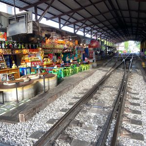 8時に線路沿いの市場。電車が来ると一斉に片付ける。