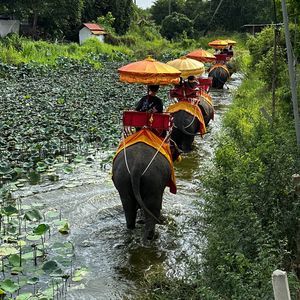 初めてのタイ旅行。観光したい所が全て揃っているツアーはなく、かといって個人で行くには遠すぎたり、交通の便が悪かったりしたので、こちらのツアーとワット•パクナームとピンクのガネーシャの半日ツアーの2つに参加しました。どちらもすごく良かったです。とくにこちらのツアーはタイ人ガイドのカップさんの案内が最高でした。日本語もお上手ですし、冗談を言って盛り上げてくれたり、簡単なタイ語を教えてくれたり、それぞれの観光地でフルーツの試食をされてくれたり、タイバーツの現金が足りなくなりそうな時に相談にのってくれたり、…など、本当に充実したツアーでした。時間もスケジュール通りでした。ご夫婦で参加している方がほとんどで全員で8人でした。象乗りの時は自分たちが象に乗っている姿は撮りにくいので、みんなで撮りあって、AirDropで写真交換しました。ベトナムでもベルトラのツアーに参加して満足でしたが、今回も満足です。