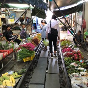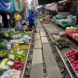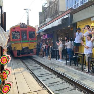 マークロン線路で、本当にキワキワで列車が来たのはびっくりしました。水上マーケットは、船からの販売は体験出来なかったが、水路を案内してくれて面白かったです。