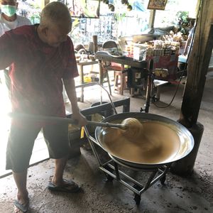 その後、椰子の実の加工所に行き、タイ人の暮らしている家などを見学沁ました。そして車でドライブインのようなところに移動してラーメンを食べて終わりました。