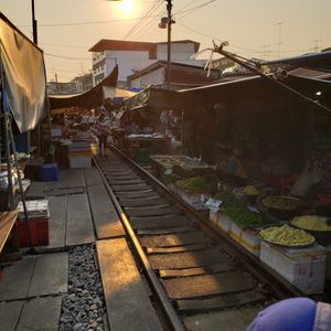 メークロン線路市場では、朝の8時半に電車が駅に到着するため、8時に着き20分の自由時間の後、電車の到着を間近で見させて頂きました!