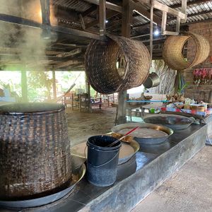 次に向かったのがココナッツファーム。ここではココナッツの花から抽出した液を煮詰めて、ココナッツシュガーを作っている様子を見学しました。ココナッツシュガーは優しい甘さでおすすめです。また、ガイドさんがココナッツの実をもらってきて、ココナッツミルクの作り方を実演してくれました。ちなみに、この手の立ち寄り施設でありがちなアグレッシブな売り込みは全くありませんでした笑