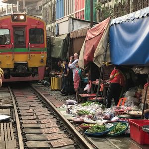 最後はメークロン行きの汽車。市場に入る時には、スターになった気分が味わえます。
