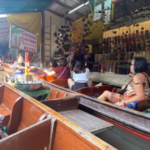 ハイエースのような車に乗って線路市場、ココナッツ村?、そして水上マーケットに行き、お昼ご飯を食べました!個人的には水上マーケットで乗ったエンジン付きの船が1番楽しかったです!リアルジェラシックパーク!!