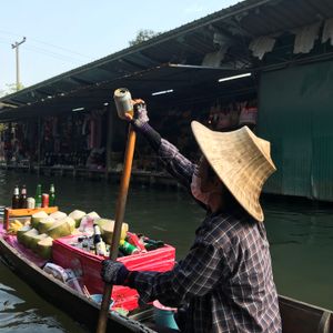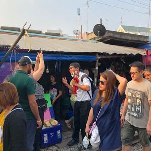 朝遅刻気味で行ったのですが待っていてくださり、とてもスタッフの方が親切なのが第一印象です。始めツアーではなく自力でいこうと思って行き方を調べていたのですが電車が市場を通る時間など計算しなければいけないため面倒になりツアーで行くことにしました。メークロン市場に行きココナッツを加工する場所に行き、水上マーケットに行き、タイラーメンを食べホテルに戻るという日程で帰りの降りる場所は自分の時は2組しかいなかったため、次に自分たちが行きたい場所に近い場所でおろしてもらえました。