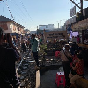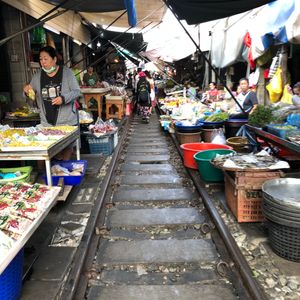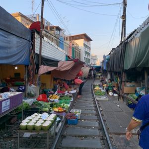 メークロンはとても混み合っていて活気があり、線路には出店がたくさん出ていて、電車が通るギリギリまで店を片付けて、電車が通りすぐに元の出店に戻る。一連の流れが当たり前のように行われていて、日本では絶対に見られない特別な雰囲気がとても楽しかったです。