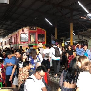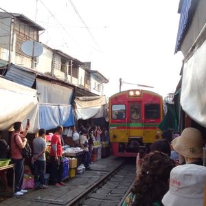 朝早い時間に出発でしたが、宿泊ホテルロビーで集合でしたので、こちらのツアーを選ばさせて頂きました。ツアー内容はメークロン線路市場にての電車見学は、皆さんが感想に書いてあります様に、日本では見ることが出来ない間近で電車が通る不思議な光景を見る事が出来ました。水上マーケットはオプションでしたが、手漕ぎボートに乗り大混雑する中を商品を見ながら進み買い物をしましたが、その中でもココナッツアイスは甘さ控えめの絶品でした。又タイラーメンでしたが、あまり期待せずに行きましたが大変満足出来るおいしさでした、最後にガイドさん運転手さんはとても親切で、同行された他5人の方もしっかり時間を守られて楽しいツアーが出来ました有難うございました。
