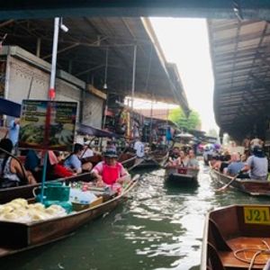 メークロン市場では人が多い中でも良い場所を確保できて、迫力満点な写真と映像が撮れましたし、市場にあった10Bのモンキーバナナがとっても美味しかったです。水上マーケットではボートが混みすぎてて前に進まず、バックしてもらって戻りました。それでもココナッツアイスを食べたり手漕ぎボートを体験して十分楽しかったです。ランチのヌードルもすごく美味しくて、朝早くても参加して本当に良かったと思いました!