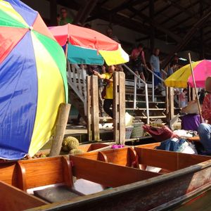・水上マーケットでは200バーツ払ってでも船に乗るべき。途中船が混雑し、下船できない状態になったが、ガイドさんが裏道を確保してくれ、ツアーでよかったと思った。