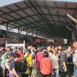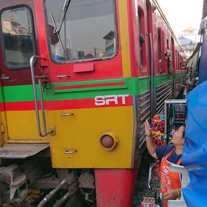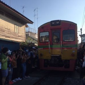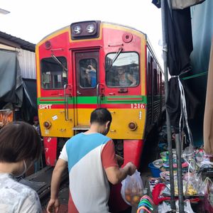 メークロンでは、電車が駅に到着するところに立ち会えます。