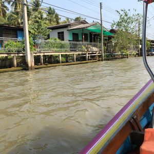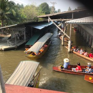 ダムヌンサドゥアック水上マーケットに行き手漕ぎボートに乗ってまわった、のですが十字路が大混雑で船と船のぶつかり合いで転覆するかと思うぐらいすごくて圧倒しましたが、その後エンジン付きの船に乗り水路を回ったのですが水路がせまいのにわりとスピードがでてて、スピード感満載で他の船の引き波もあってすごくばちゃびちゃでスリリングでした。