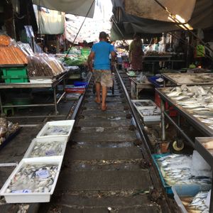 メークロン線路市場で、いつも何をすればいいのかいつも悩む。出発遅くして、欲しいかな。