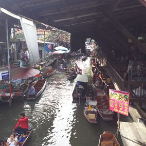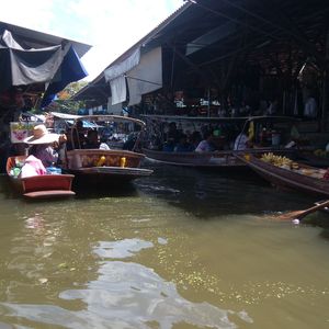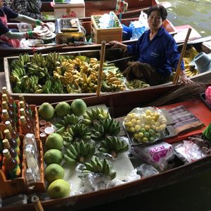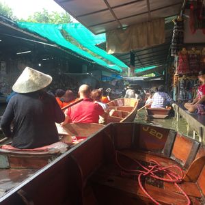 マーケット自体は、観光客向けのものしか、売っていなく、生活感は全くありませんが、人で溢れていて、とても活気があり楽しいです。船がひしめきあってスリルあります。手漕ぎボートと、エンジン付きのボート両方乗りました。とても、楽しい時間を過ごせました。