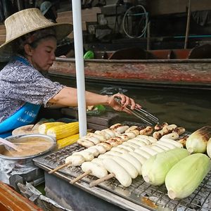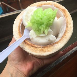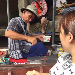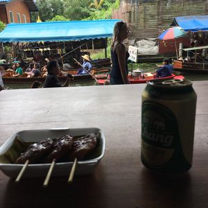 水上マーケットはボート無しツアーで、1人で乗る場合値段が高くなると言われてやめました。川沿いのマーケットを歩きましたが、雰囲気を味わえて楽しかったです。オススメのココナッツアイス、安くて美味しかったです。ご飯を食べてなかったので、焼き鳥とビールを飲みました(^^)