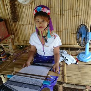 ます。テント内で織り機で布を織ってます。一緒に写真を撮れたりできます。首長族に会いたい方にはオススメですが、うーんッて感じです。