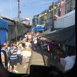 線路市場は、実際に電車に乗って行きましたが、電車の中から外の線路市場の写真を撮る人と、逆に線路から電車と市場のギリギリを写す人がお互いの光景を取り合ってて、とても面白く感じました。