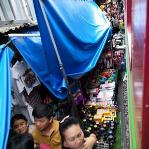 線路上で営業中の市場の中を列車がゆっくり通過するというシュチュは台湾の平渓線で見たけど、あちらより列車通過区間が長いし、降りる駅もなぜかホームがない所だったとか、その「日本じゃありえないアバウトさ」はあっちより上かも、です。 …JR北海道とかも「赤字だからローカル線廃止」とかばっかでなく、こういう客よべるダイナミックな発想してほしい…
