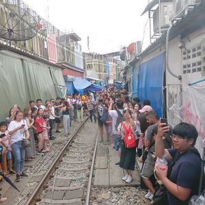 メークロンは手前の駅(本当に何もない無人駅。逆に貴重な体験になりました。)から列車に乗って、電車を待つ観光客の景色を見られて面白かったです。