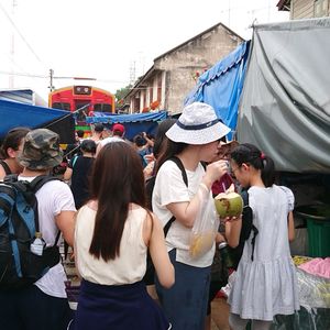 このツアーでは他のツアーと違い列車に乗車するので車内から線路ギリギリの市場の雰囲気を楽しむ事が出来ます。(窓際の席を確保する為に1時間以上前から列車に乗り込むことになりますが)
