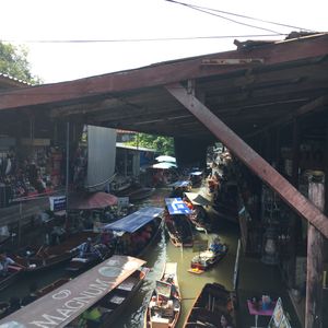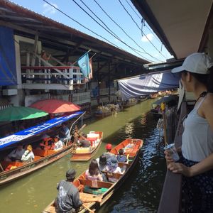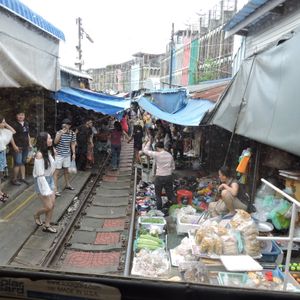 水上マーケットはすごい混雑でした。日曜日に行ったので、観光地はしかたないですね。ボート多すぎてなかなか前に進めない状態だったので、暑さ対策は必要です。メークロン路線市場は実際に電車に乗るので、市場を畳む様子はあまり見れないのですが電車の下から見てる人がすれすれのところを通る臨場感は味わえました。ガイドさんがよく見える電車端に案内してくれました。こちらもすごい人混みでした。一日に遠い距離を回るので自分たちで行くには大変なコースだったのでツアーを申し込んで良かったです!とても良い思い出になりました。楽しかったです‼︎