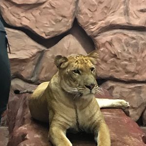 象に乗ったり、ライガー(ライオンとトラのハーフ)と一緒に写真を撮ることができる。