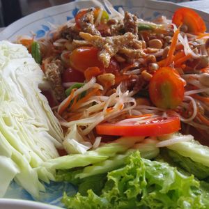 メークロンの電車の時間に合わせるべく、エレファントパークで変な時間がありやや退屈しました。また、お昼はツアー全員で大皿料理を食べなければならず赤の他人同士とても気を使いました。あれなら、昼食は各自にした方がいい気がします。私たち以外にレストランを利用している客はいませんでした。