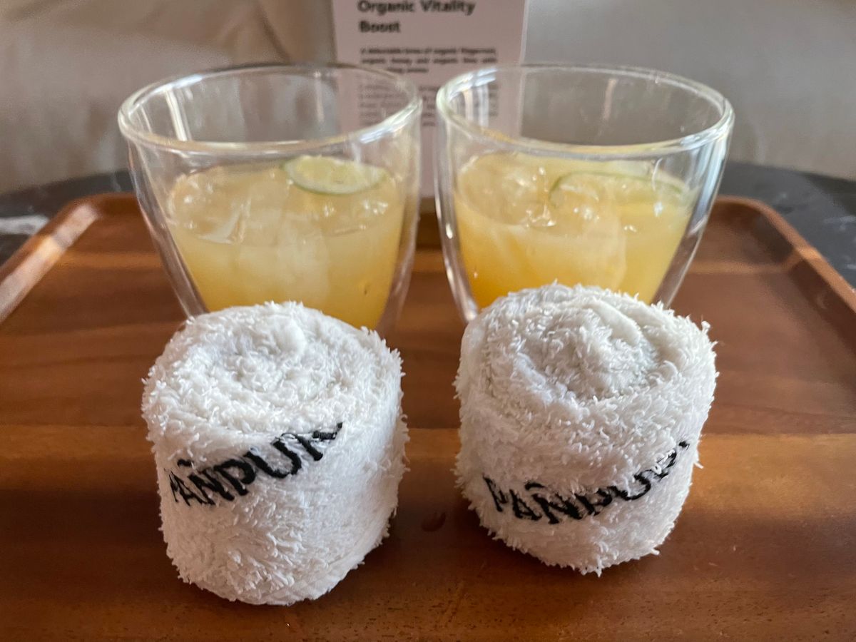 おんせんに入ってから室内着でスパ室に移動、ブースタードリンクをいただきながら、集中して欲しい箇所や強さやオイルを決めます。