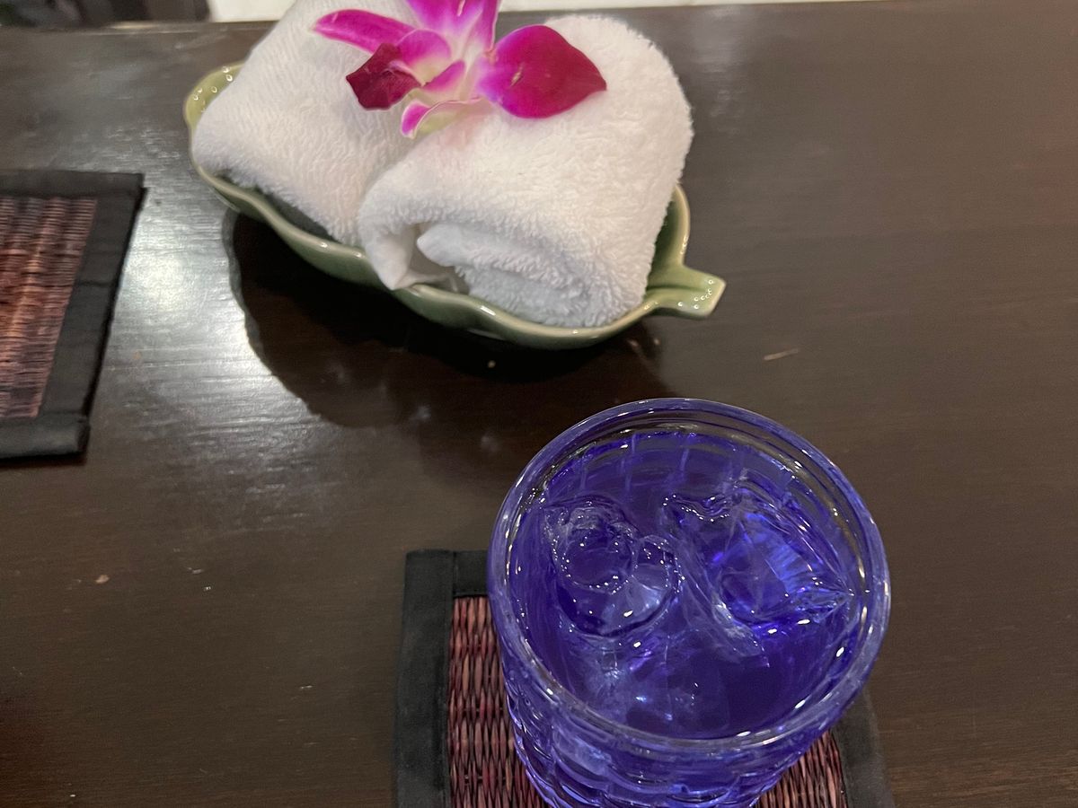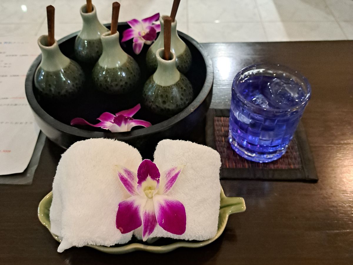 3時間のコースを体験しました。受付へ行くと、日本人の方が説明してくれます。そこで、バタフライピーの飲み物を出してくれます。
