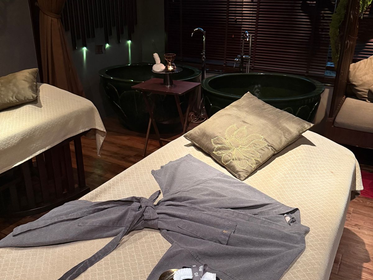 主人と体験しました。雨季でしたが、アソーク駅から直結なので、雨の心配もせず行けました。ウェルカムドリンクを頂きながら、施術の流れなど説明を受けいざカップルルームへ。まずは軽くシャワーを浴びて、簡易パンツと用意されたルームウェアへお着替え。タイマッサージ!主人は痛かった〜と言ってましたが私は気持ちよかったです。男女の差か個人的な差かはわかりませんが、強めになどリクエストすればいいと思います。アロママッサージは極楽です。初めに自分で好きなアロマを選べるので、好きな香りで全身リラックス。最後にフェイシャルでしたが、眠ってしまいました!顔を温タオルで蒸す間に、マッサージがあって、最高でした。至れり尽くせりで、至福とひと時を味わえました。気持ちいいと思ったなら、チップは欠かせません。