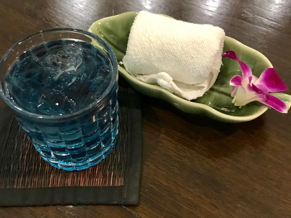 最初に、バタフライピーのウエルカムドリンク!