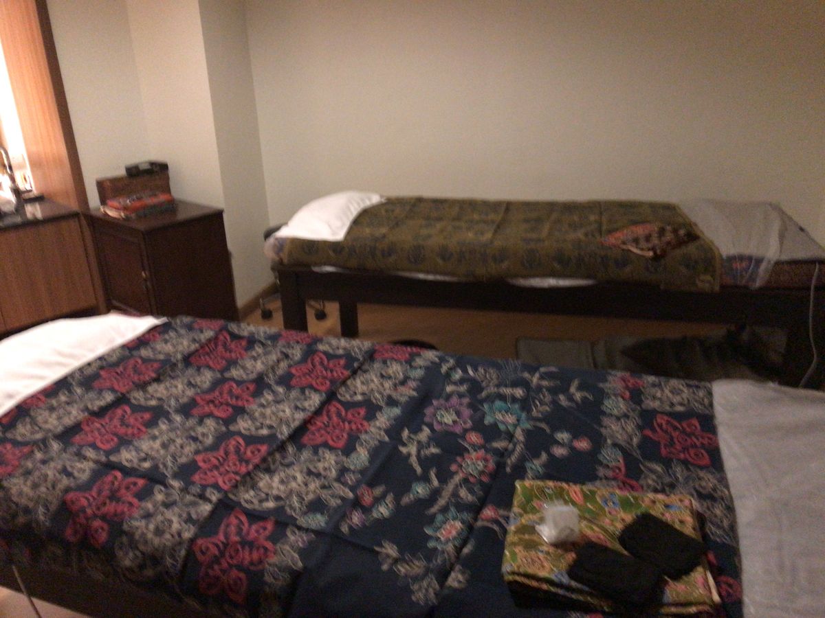 マッサージを受けた経験のない夫とペアのコースで申し込みました。以前行った娘から「紙パンツ1枚だよー。お父さん大丈夫?」と心配されながらでしたが、着替え、シャワーの時は上手に退出して下さり、大丈夫でした。2時間半のコースは丁度良い感じでした。受付の方は日本語で対応して下さり、敏感肌かなどもカウンセリングして下さり、助かりました。
