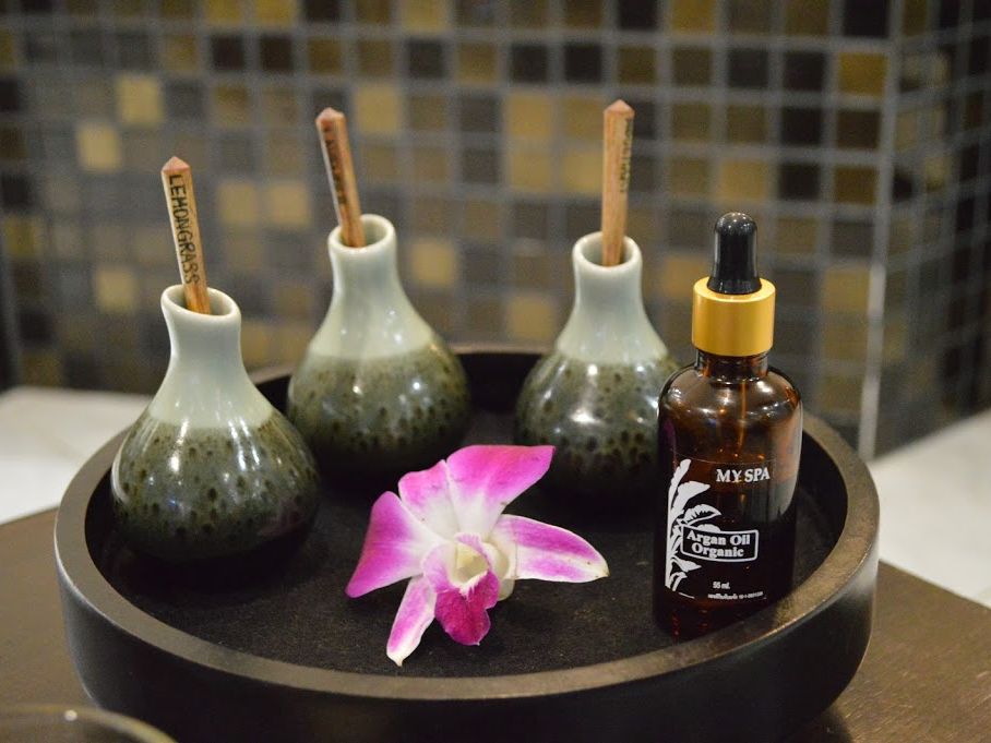 日本語を話せるスタッフはいない為、やり取りは英語かタイ語のみになります。カウンセリングシートを記入後、分かりやすい英語で丁寧にどこを重点的にマッサージして欲しいかなどの質問をされ、4種類のオイルから好きなものを選びます。個室にはシャワールームや化粧台もあり、シャワーは施術前後どちらでも使う事が出来ます。