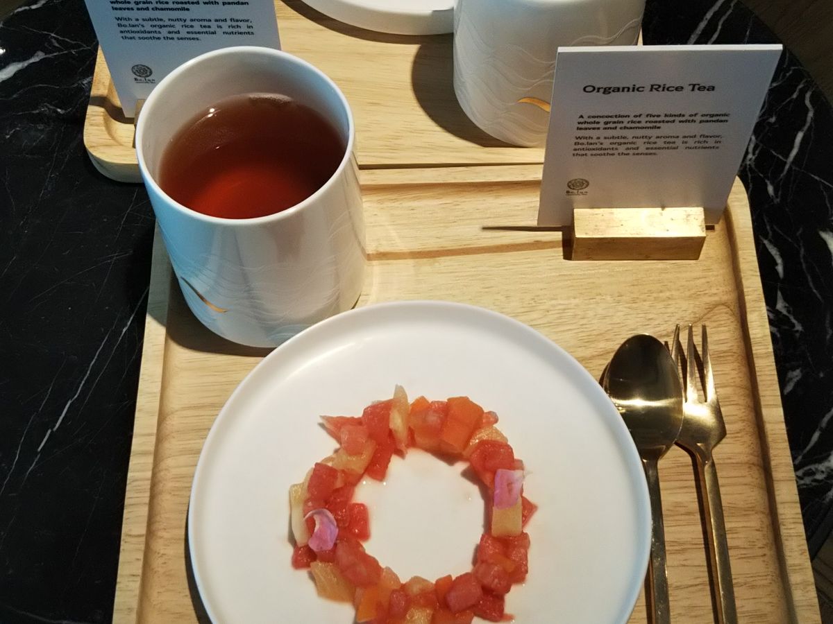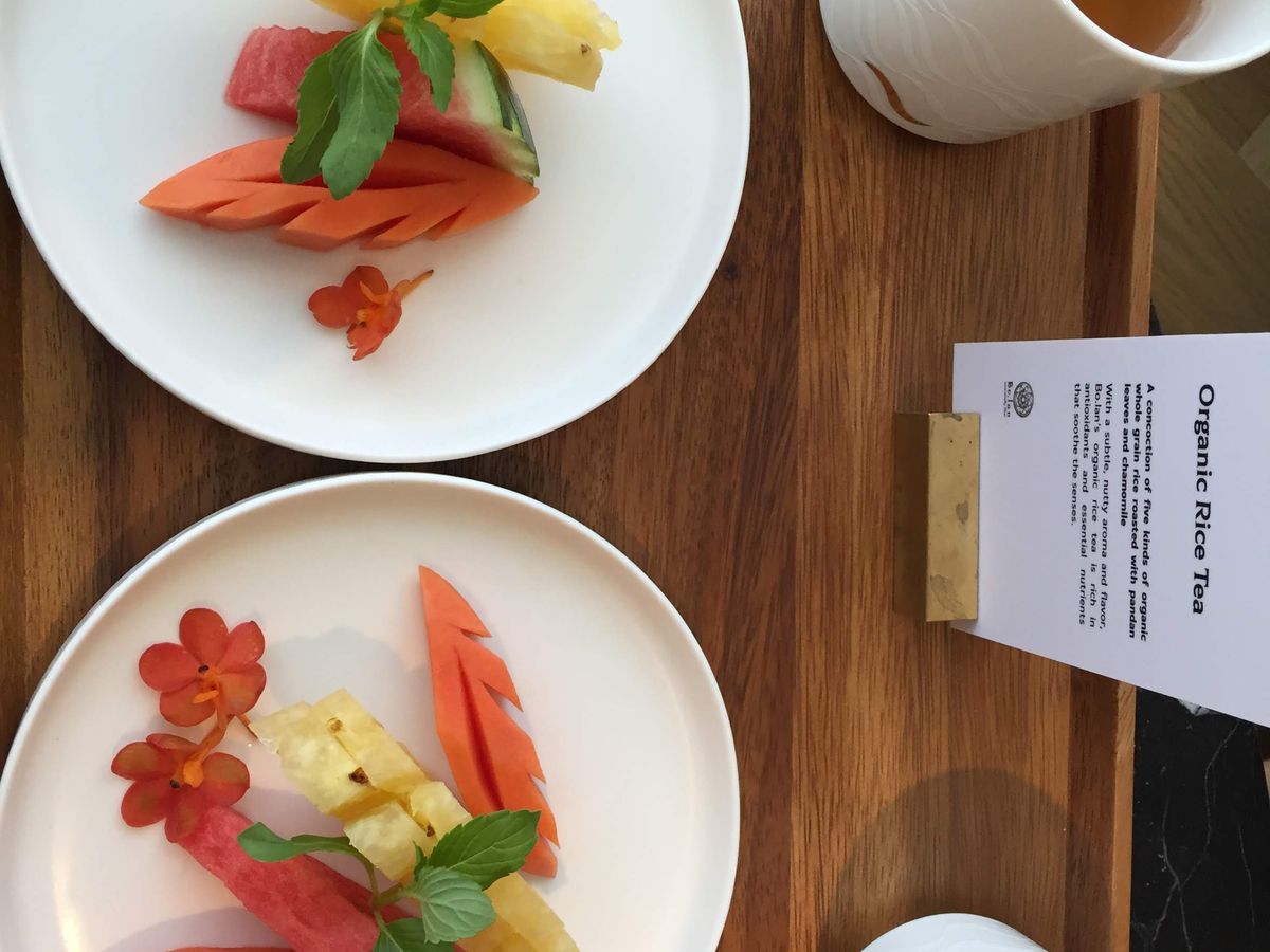 施術後着替え、お茶とフルーツをいただき、終了です。
