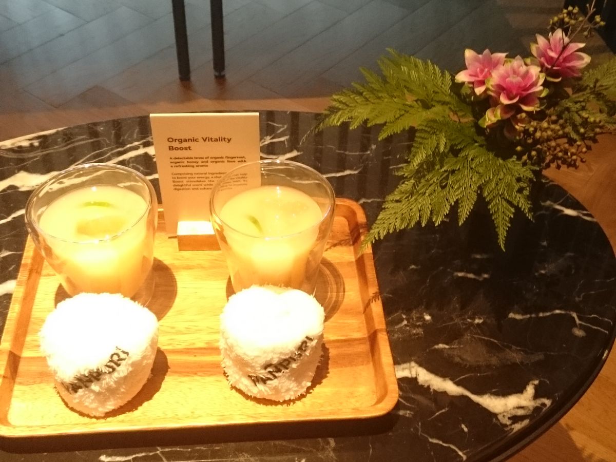 オーガニックのジュースをいただきながら、チェックシートに記入します。そうこうしてるうちにお部屋に案内していただき、あまりにも広い部屋にびっくりです。(写真を撮りたかったのですが、お店の方に確認していなかったので止めました。)ガラス張りですがマジックミラーなので見えないとのこと。とはいっても高層階なので誰も見ないとは思いますが( ´∀` )温泉はニセコの温泉だと言ってました。