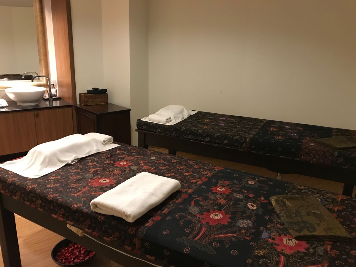 大晦日に母親、旦那の3人で予約をしました。私と母親は3時間のスコータイパッセージ、旦那はアユタヤ パッセージにしました。スコータイパッセージにはハーバルバスがあり、お湯加減もちょうどよく買い物の後の疲れた体が一気に癒されました。私が先にバスに浸かり、その間母は最初にスクラブを受けていました。お部屋もちょうどよい暗さと温度調整で終始快適でした。また、最後のフェイシャルがとても気持ちよく、終わったあとはツルツルでした。あまりにもよかったので、施術後に今回のトリートメントで使用したフェイシャルスクラブを買って帰りました。HARNN製品はパッケージデザインがとても綺麗でお土産にもとても好評でした。旦那はボディのみのパッケージでしたが、とても気に入ったようで、また来たいと言っていました。また次回予約したいと思います。