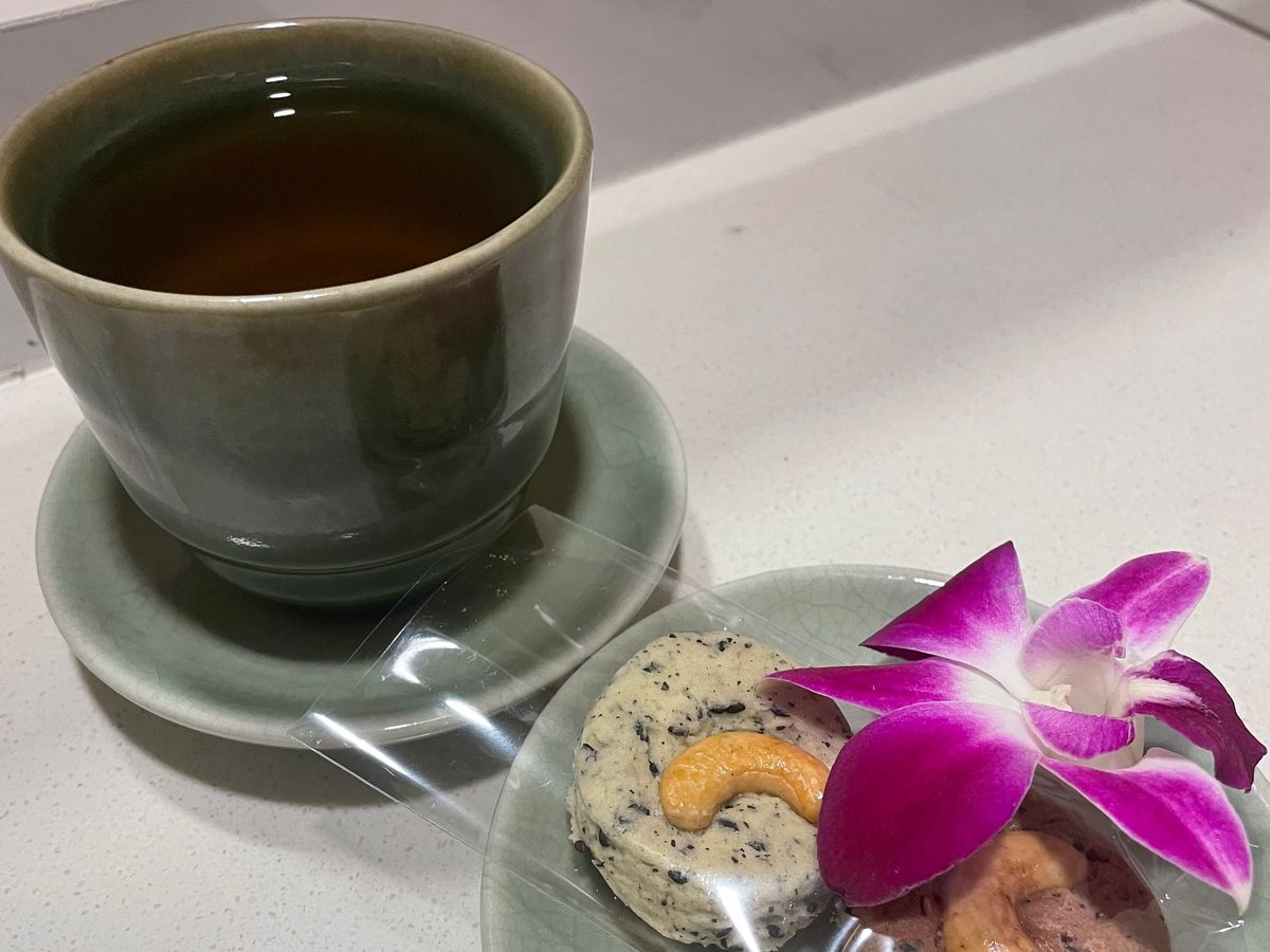 終了後は、温かいお茶とフルーツが提供されますので、それをいただきながらアンケートを書いて終了となります。