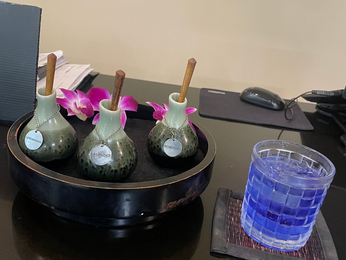 その後、別室で顔と身体のマッサージ。まずは好みの香りを選び、足浴し、ベッドでマッサージ。静かな音楽に癒されながらオイルでゆっくり受けるマッサージはとても心地よく、たぶん眠ってしまいました。