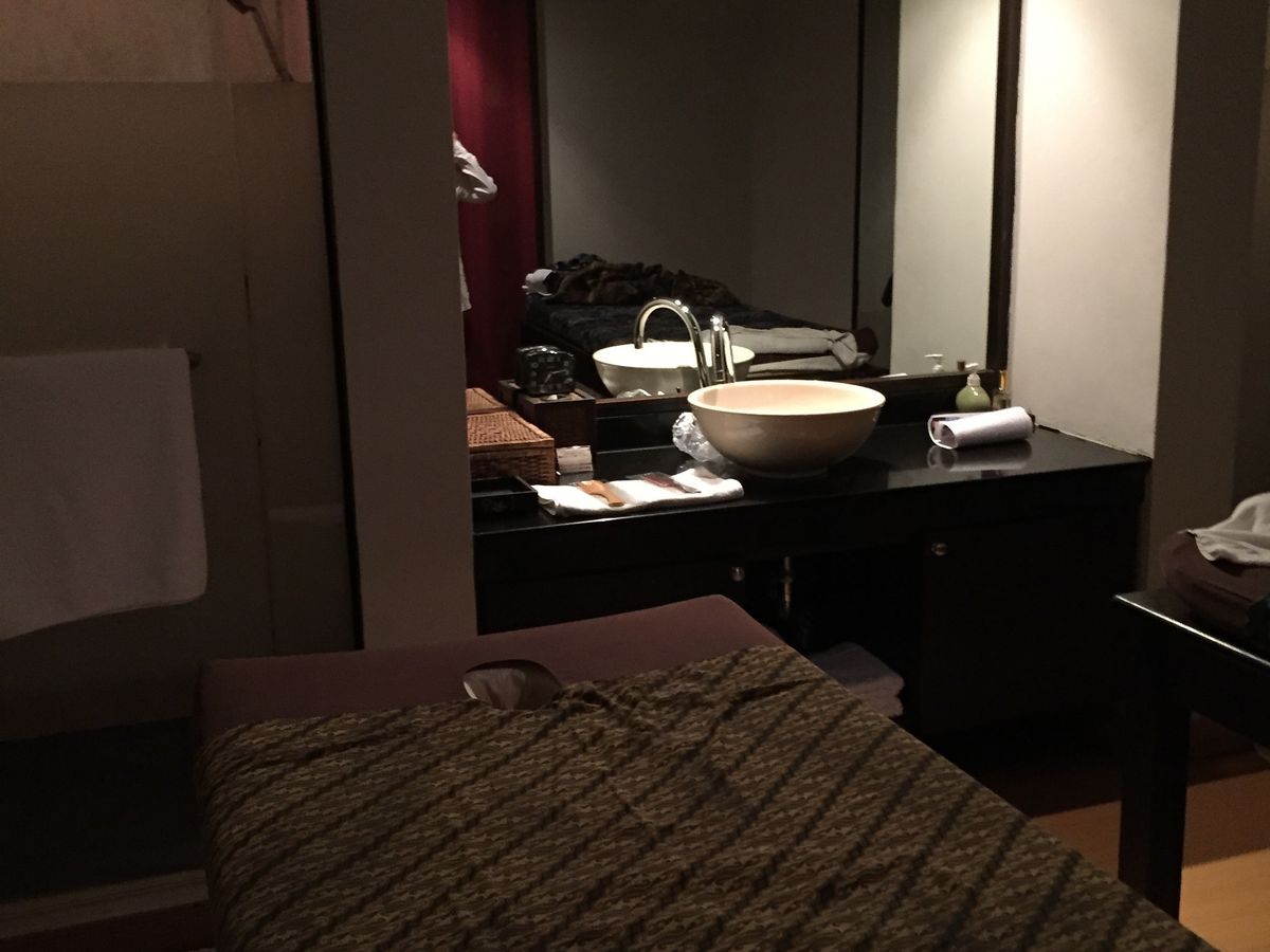 同じ部屋のツインでお願いしてありましたが、最初に紙ショーツのみでスクラブマッサージを30分やった後、2人同時にスッポンポンになるように言われ1回シャワーで流すのですが、ガラス張りのシャワールームで、1つシャワーヘッドがあり、2人で同時に入る感じでした。中で結局1人が浴びてる間、もう1人は待つしかないので、寒い中待っている状態でした。アルガンオイルマッサージをやりましたが、薄暗い照明と、旅の疲れもあり2時間半ウトウトしっ放しでした。うつ伏せや仰向けと向きを変える時に声をかけてくれます。マッサージは、自分がエステティシャンとして働いていた経験からすると、可もなく不可もなく…といった感じでした。友達は、満足していました。チップは、お礼の意味を込め20Bベットの上に置いておきました。場所は、わかりやすかったです。