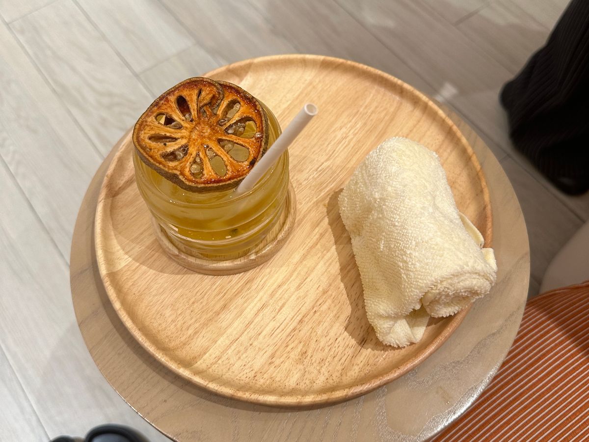 予約内容を確認しながらウェルカムドリンクをいただきました。