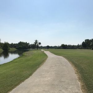 バンコクからゴルフ場までは1時間30分ぐらいです。市内の渋滞具合で大きく変わりそうです。ゴルフ場はフェアウエーに沿って川があるためなかなか大変です。グリーンもアンジュレイションがあって難しいです。暑さ対策だけはしっかりやっておいてください。