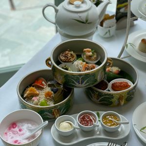 夫婦2人と中学生と小学生の娘と参加しました。オリエンタル1、ウエスタンスタイル2(今の時期はTEA FOR TREESという森をテーマにしたものでした)をオーダー。11歳の娘は無料なので飲み物は別に頼んだ方がよいのかなと迷っていたところ、カップをもう一つ持ってきてくれてティーポッドの紅茶をついでくれました。あと、最初にアイスクリームがでたのですが、娘にもチョコレートアイスをだしてくれました。途中でおかわりも聞いてくれるので、足りないということはなく4人で3つで十分すぎる量でした。子供達のお気に入りはスコーンとホームメイドジャム、私は、オリエンタルのセイボリーがひとつひとつ繊細な味付けで気に入りました。