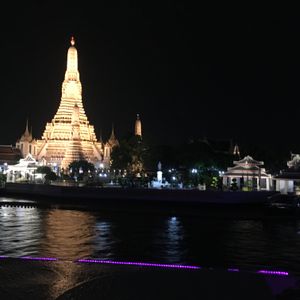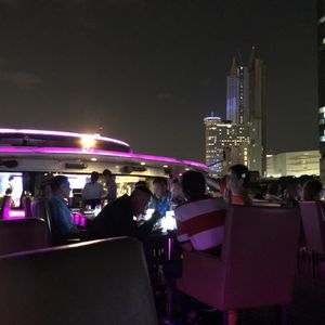 夕方一度解散し、ディナークルーズに連れて行って下さるのは別のガイドさんでした。このガイドさんは、もっと何を言っているのかわからず、タイのガイドさんはの日本語力は、期待してはいけないのだと思いました。小さくたどたどしい声とのやり取りは大変でしたが、予約席が船上の先頭席でとても気持ち良かったです。船上スタッフさんに日本語が少しわかる方がいらして、私たちをとても気にかけてくださったので、快適に過ごすことができました。