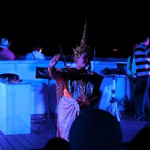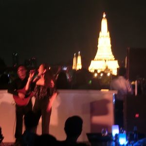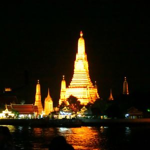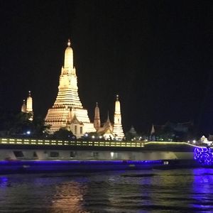 クルージングは他のツアーで、しかも同じグランドパール号でランチクルージングに参加しました。(うっかり?偶然?)昼もビールを飲みつつ、川風を受けながら寺院を眺め、優雅な時間に満足でした。が、夜は寺院のライトアップが本当に美しい!+昼との違いはタイ舞踊鑑賞(プチです。)、バンドの演奏と、生歌!これが本当にリッチ気分にさせてくれます。グランドパール号は一階、二階、地下とあるのですが、地下と二階でそれぞれ別のバンドが演奏されます。(でも、音楽は交わらず良い感じ。)なので自分の好みのところへ。