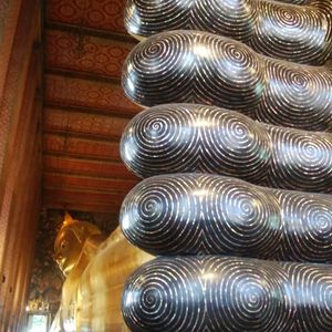 涅槃仏寺院(ワット・ポー)は、巨大な涅槃仏。釈迦の臨終の姿を形取ったものですが、(別日に訪れた)アユタヤの草原に佇む、涅槃仏とはまた趣きが違います。一番の違いは、金箔に包まれた絢爛豪華さでしょうか。