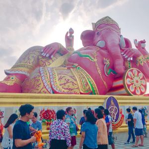 娘が喜びそうなので、参加しましたが私も楽しめました。ワット・パクナムも色が素敵でした。ピンクのガネーシャはガネーシャだけでなく まわりのネズミや島も可愛い色でカメラ好きの娘は とっても喜んでいました。自分たちで行くには面倒な所なので ツアーに参加して良かったです。
