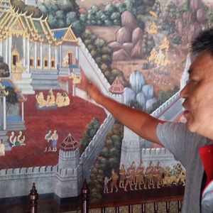 前日の夜遅くにバンコクに到着だったので、午後からのこのツアーに参加しました。当日の参加者は7名でした。ホテルから移動中にこの時期には珍しく、雨が降り出して来て、あいにくの雨の中、王宮、エメラルド寺院からツアー開始。ガイドさんも雨具の準備はしておらず、カッパを王宮前で購入されてました。王宮は中国人で大混雑でした。激しく降り出した雨の中、ガイドさんは一生懸命、日本語でがんばってかなり詳しく時間をかけて説明をしてくれました。ちょっと日本語があやしいので、なかなか理解が難しいところもありましたが、熱心に説明してくれたのは伝わりました。ガイドさんがあまり後ろを振り返らずどんどんと行ってしまう事があり、中国人で大混雑だったこともあり、後ろにいた人達が何度かはぐれそうになってたのがマイナスポイントでした。