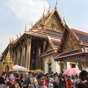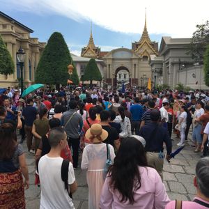 王宮周辺は、国王葬儀が行われた直後もあって、タイ国内の学生が大勢見学に訪れてるなど、大変混雑していた。また中国人旅行者も多く、至るところで写真撮影を行うなどルールを無視し見学の妨げになり、中国人マナーには疲れ果てました。その中で、ベルトラの現地ガイドは、近道案内や見学コースを変更するなど効率的に回ってくれたので予定通り見学でき、凄く満足でした。見学終了後は、王宮周辺での現地解散要望にも快諾していただき、個別に予約していたレストラン(ザ・デッキ)への道案内までしてくれました。深謝です。参考までに、夕食を予約していたレストラン(ザ・デッキ)は、対岸にライトアップされた暁の寺(ワットアルン)が眺望でき、ロケーション抜群です。料理もタイ料理以外にイタリアン料理もあり、美味しくいただきました。特にポークリブは絶品でした。是非訪れる価値十分です。午後からのタイ観光を満喫しました。