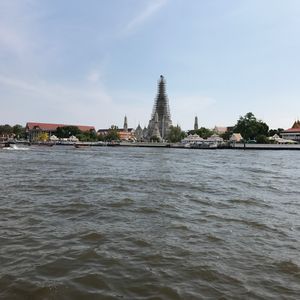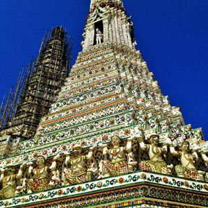 最後はタクシン王が菩提寺とした「暁の寺」ともいわれています「ワット・アルン」。チャオプラヤー川の西岸にあるため、専用渡し船に乗って行きます。シンボルの大仏塔は、色鮮やかな陶器片のモザイクで飾られ、とても美しいです。